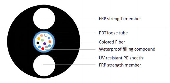 Las fibras, se colocan en un tubo flojo hecho de un alto plástico del módulo. Los tubos se llenan de un compuesto de relleno hidrófugo.