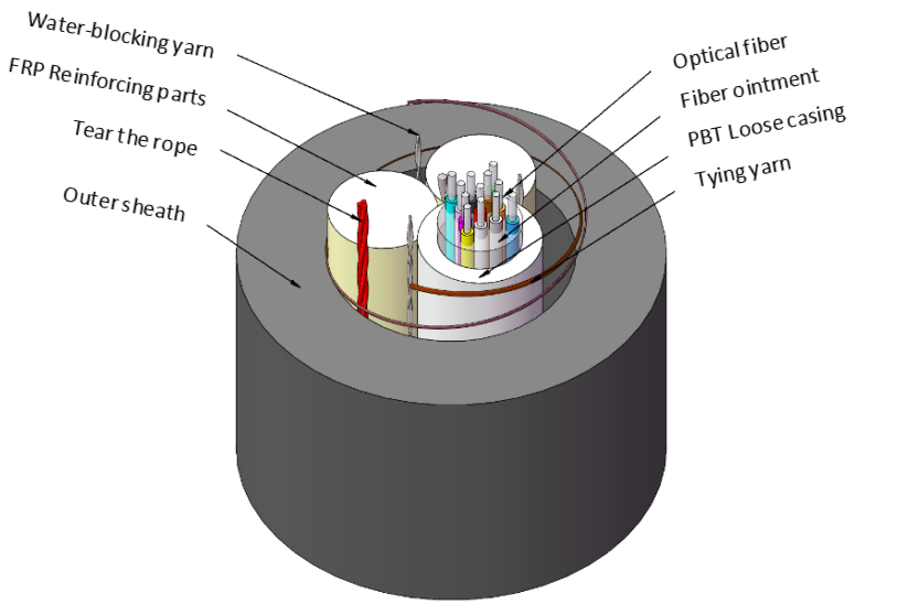 ① The reasonable design and precise control of the excess length of the optical fiber in the loose tube and the cabling method endow the optical cable with excellent mechanical and environmental performance;
