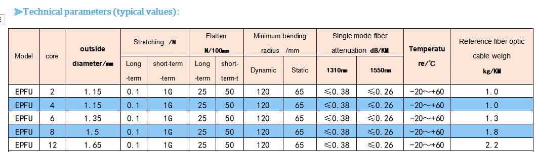 La estructura del cable consiste en fibras de un solo modo o de varios modos (que pueden contener fibras de relleno) bien dispuestas, formando una configuración regular.el paquete se coloca en el centro y se extruye con una envoltura de polietileno de alta densidad.